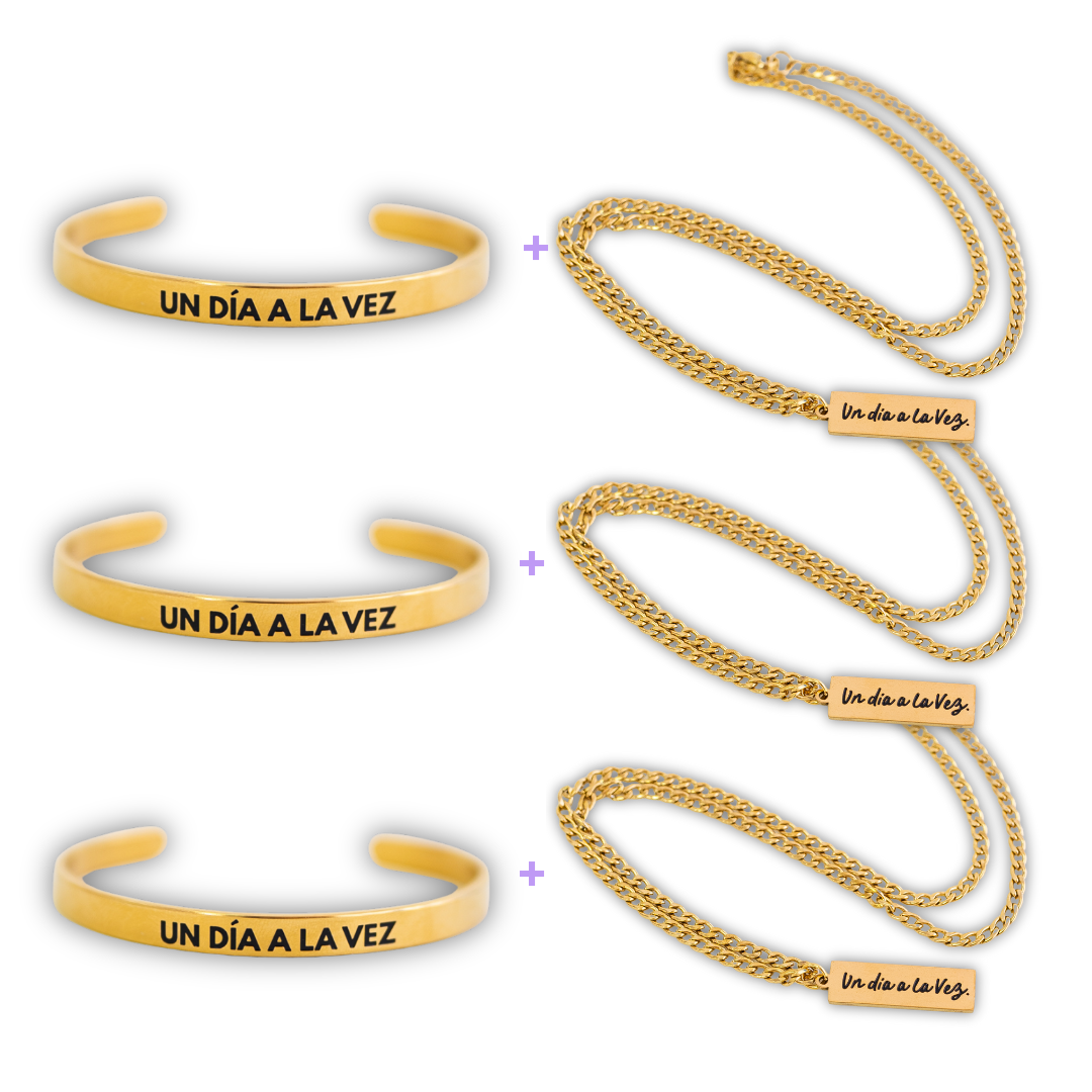 Bundle “Dúo Dorado” – Collar + Pulsera Un Día a la Vez (x3)